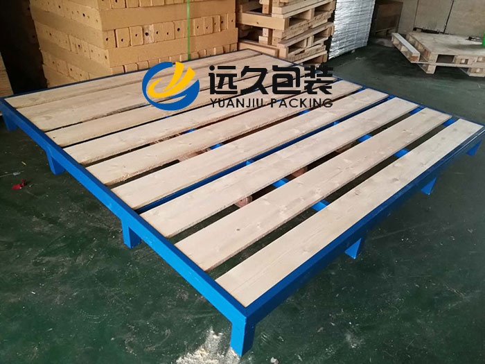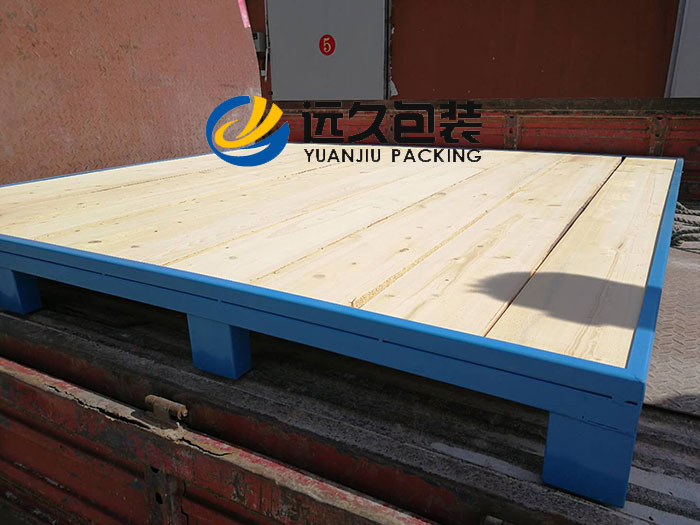 目前市場上使用的托盤從材料上看主要有木質(zhì)托盤、塑料托盤、金屬托盤、紙托盤、復(fù)合材料托盤。其中金屬托盤承載能力在托盤中是非常強的,金屬托盤的出現(xiàn)解決了重量大的物體運輸中的安全問題。但是金屬托盤成本費用有非常高,而且自重比較大是金屬托盤一個無法改變的缺點。 鋼結(jié)構(gòu)托盤一般只是為了解決較重貨物的承載問題才選用,如果對托盤強度要求非常高,而且又要一定程度上控制托盤的自重和成本,就需要通過改善結(jié)構(gòu)設(shè)計來克服金屬托盤自重大、成本高這一缺點。在這種市場需求客戶需要的情形下,我司研發(fā)了一款金屬鋼制框架重型木托盤,很好的解決了既可以控制成本,又有高強度的托盤品種。 此款托盤是我司在2011年根據(jù)客戶需求,為客戶量身設(shè)計定做的一款載重能力超大的木托盤,最大載重量可達8000kg,金屬鋼制框架重型木托盤現(xiàn)在在市面上流通使用極少,在當時更是沒有。此款金屬鋼制框架重型木托盤使用的是四向進叉結(jié)構(gòu),九個大腳用的是矩形鋼,中層加上加厚的鋼質(zhì)橫梁,四周的防撞梁焊接30的角鋼,頂層用30mm厚度的加寬木板滿鋪,按照這個思路,很好的平衡了木托盤靜載重量與動載重量,設(shè)計之初,客戶對我們的思路十分滿意,木托盤使用后的事實證明,效果非常的好,達到了客戶預(yù)期需求。 金屬鋼制框架重型木托盤既解決了單純的木質(zhì)結(jié)構(gòu)木托盤底部載重達不到所需要求,又很好克服了金屬噴塑鋼制鐵托盤面板載重稍弱的情況,此款金屬鋼制框架重型木托盤的設(shè)計也為超重型托盤的設(shè)計提供了一個方向,可謂是開了一個金屬鋼制框架重型木托盤的先例。如果按它的材質(zhì)歸類,既可以歸類為木托盤,也可以歸類為鐵托盤,結(jié)構(gòu)是四向進叉結(jié)構(gòu),所以我司將其命名為金屬鋼制框架重型木托盤。